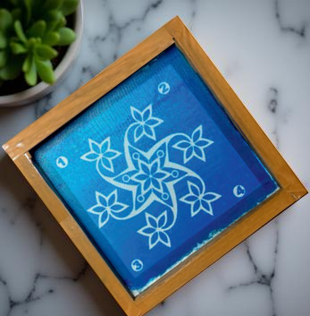 Rangly Floral Star Rangoli Pattern Rangoli Stencil Wooden 5X5 inches Pack of 1 piece