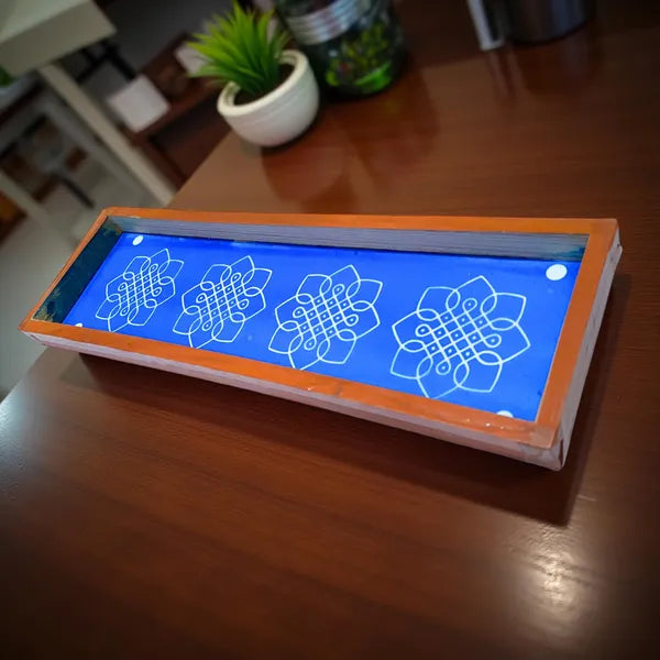 Bring tradition and elegance to your doorstep with our beautifully crafted Flower Padi Kolam Rangoli Stencil. Designed in a classic South Indian Padi Kolam style with intricate flower patterns, this wooden stencil helps you create stunning and symmetrical rangoli effortlessly—perfect for festivals, daily pooja, weddings, and special occasions. Made from high-quality durable wood, this stencil is reusable, easy to clean, and perfect for both beginners and professionals. Just place it flat, sprinkle color powders or use paint, and lift to reveal a flawless design in seconds!