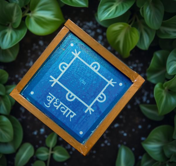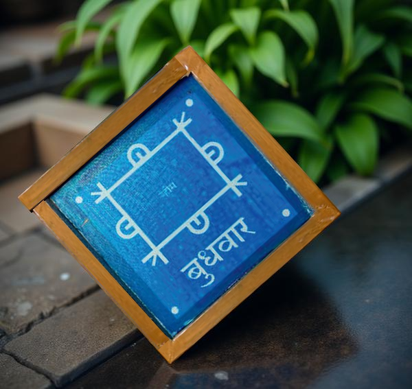 Rangly Geometric Kolam with Budhwar Rangoli Stencil Wooden 5*5 Inches Pack of 1 piece