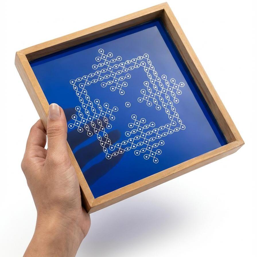 Rangoli Wooden Stencil made of high quality cloth covered with a wooden frame. Wooden Rangoli Stencil is a easy to use Instant Rangoli Stencil used to draw complex and beautiful designs in few seconds