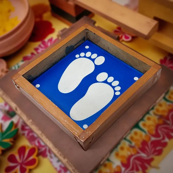 Rangly Krishna Pada Kolam Rangoli Stencil Wooden, 5 × 5 Inches Pack of 1 Piece