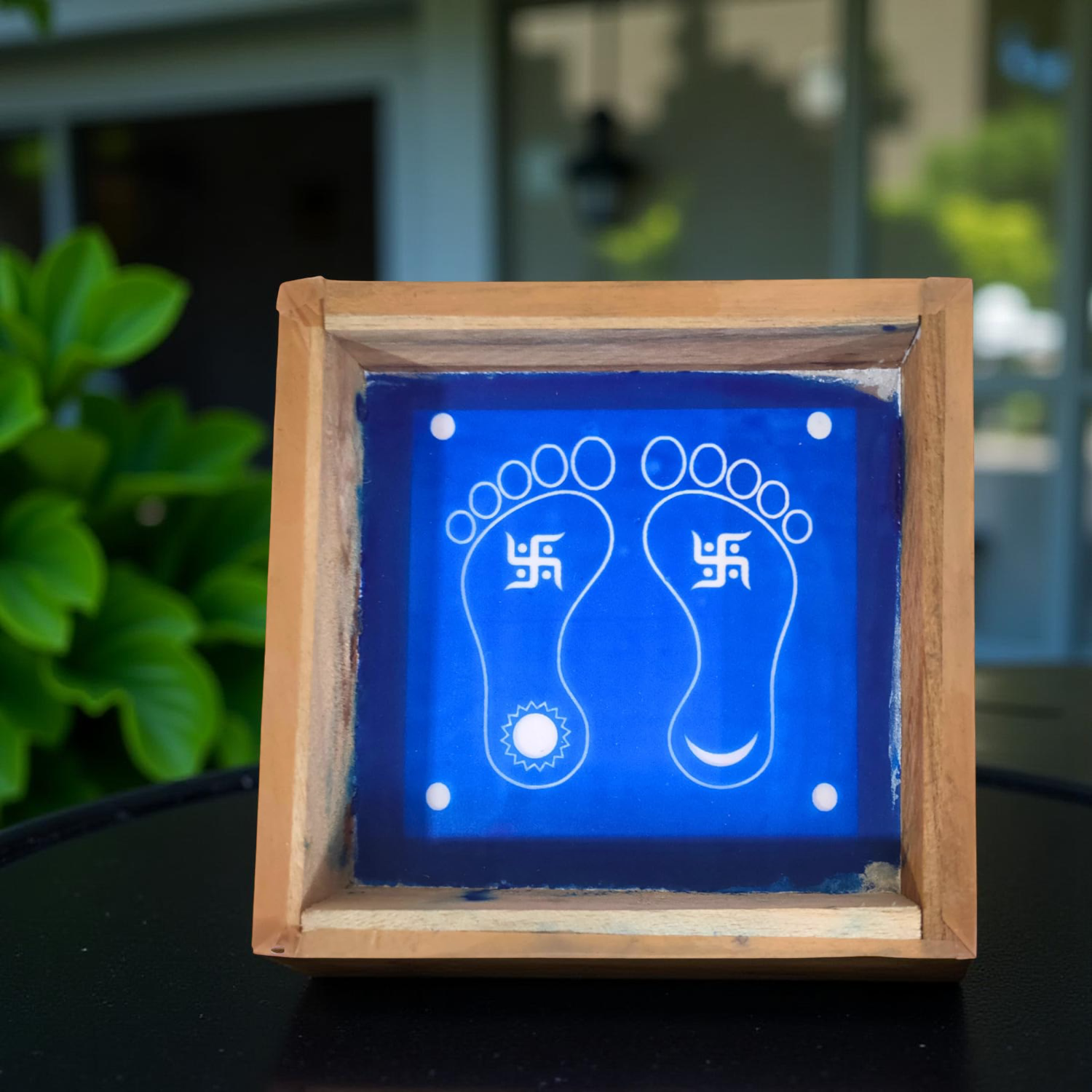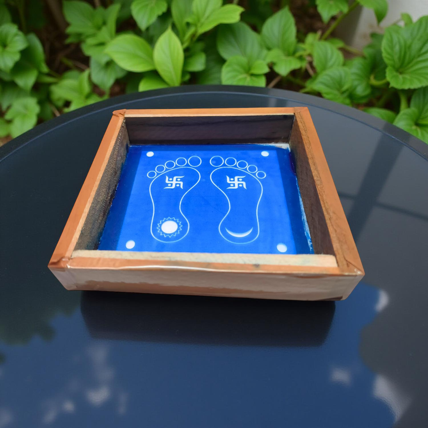 Rangly Lakshmi Padam Kolam with Swastik Rangoli Stencil Wooden 5X5 inches Pack of 1 piece