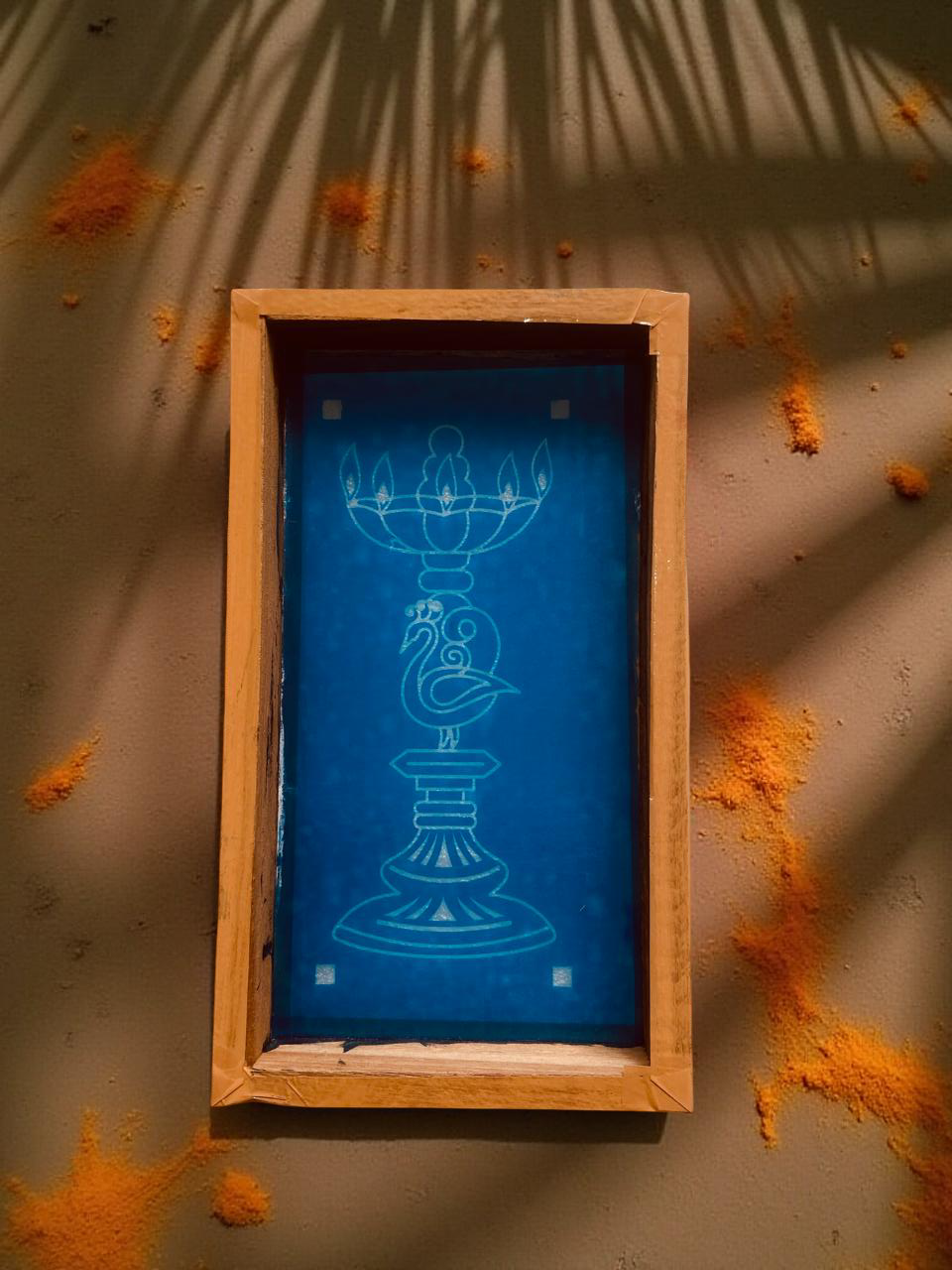 Rangly Peacock Kuthu Vilaku Rangoli Stencil Wooden 9x5 Inches Pack of 1 piece