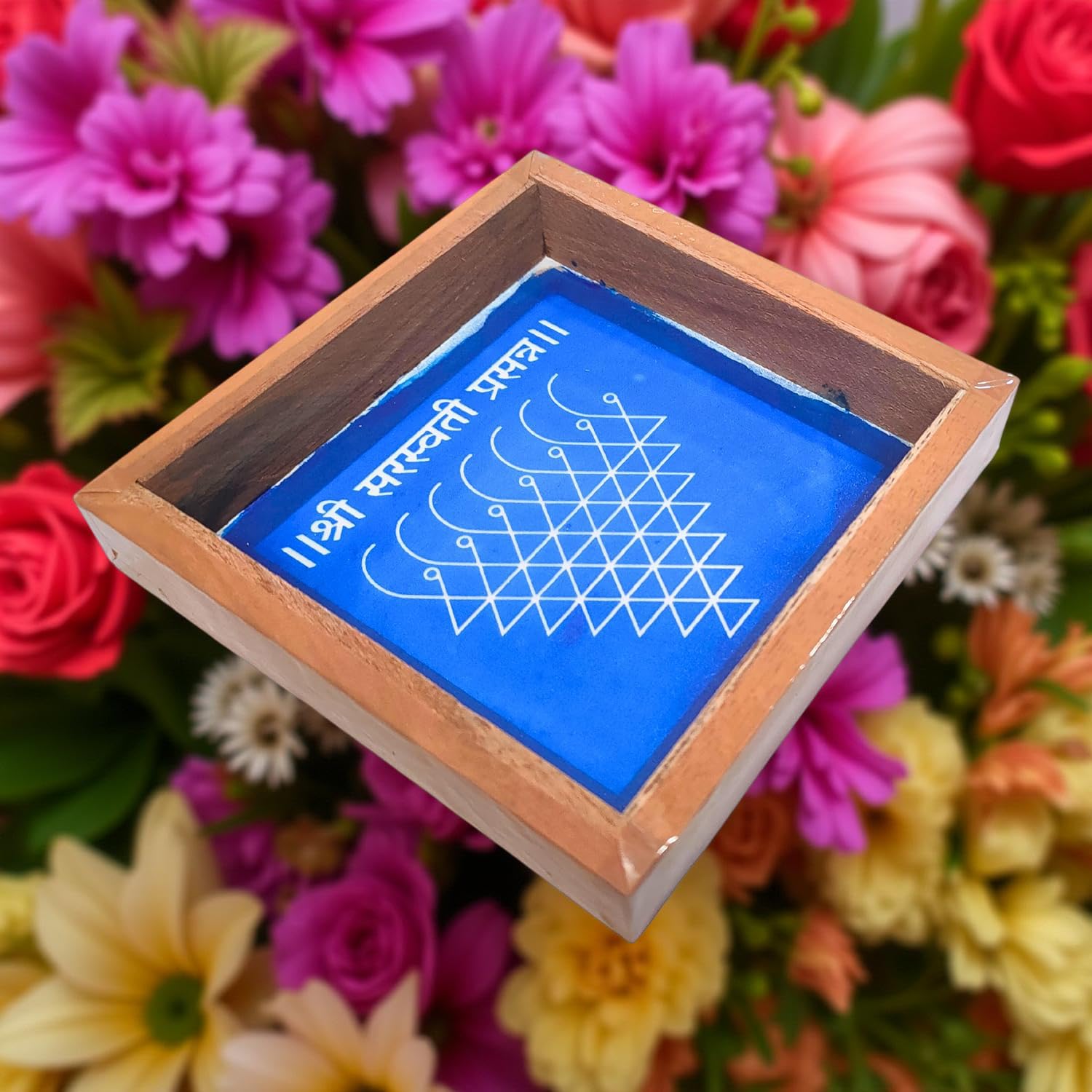Rangly Saraswathi Yantra Rangoli Stencil Wooden 5X5 Inches Pack of 1 piece