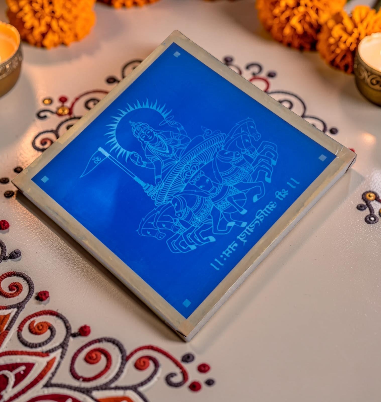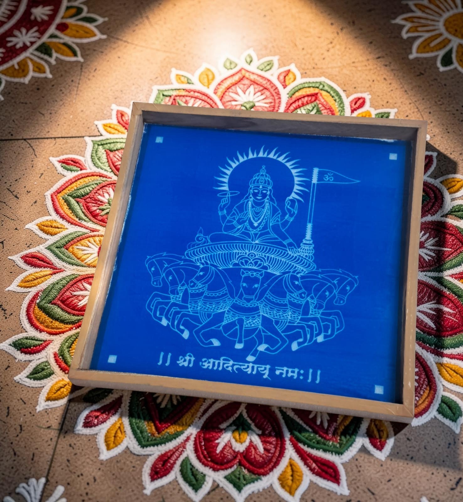 Rangly Surya Bhagwan Rangoli Design Stencil Wooden 13x13 Inches Pack of 1 piece